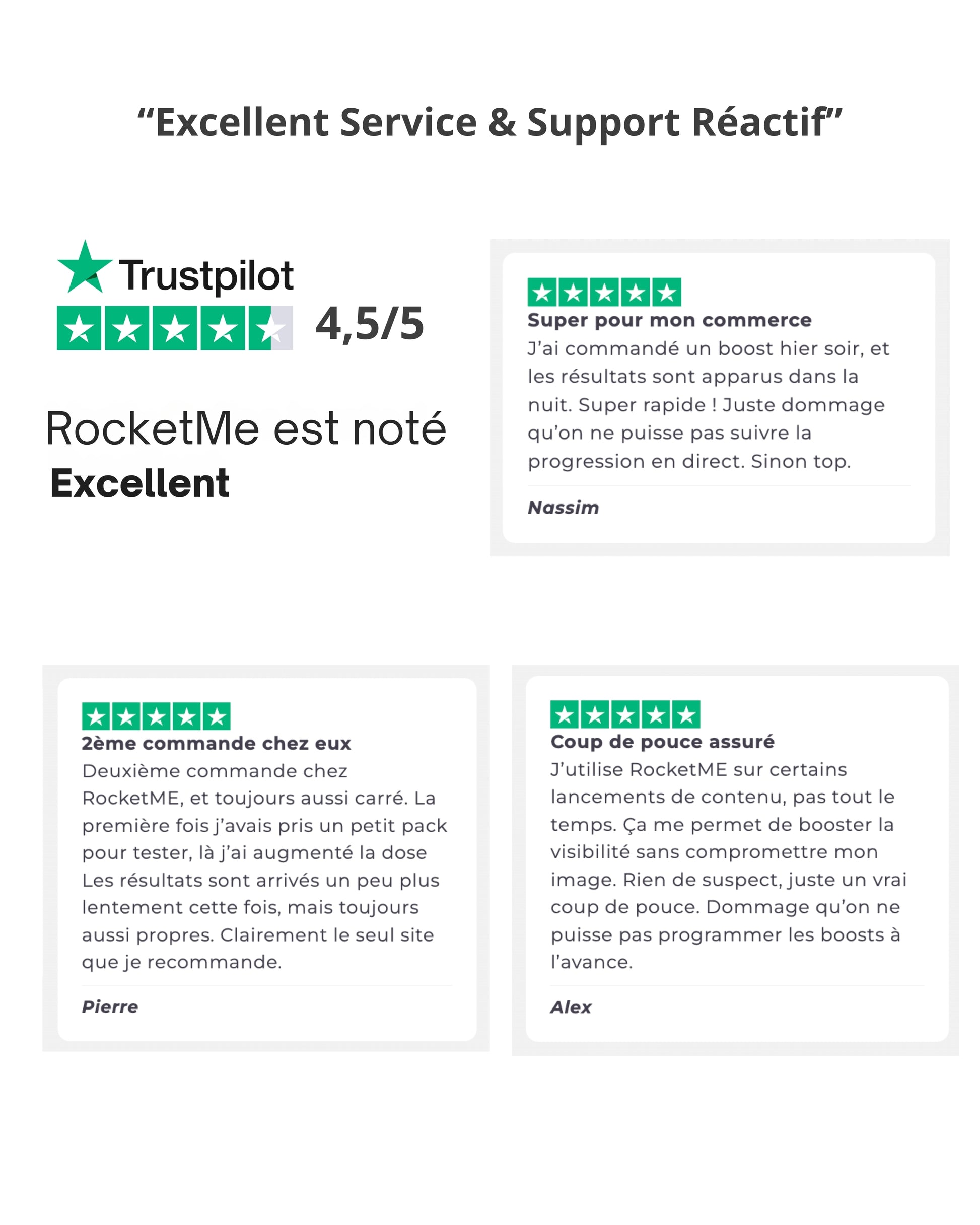 Notre garantie TrustMe+ vous couvre avec un renvoi gratuit. Chez RocketMe, on préfère une méthode réaliste pour des résultats durables.