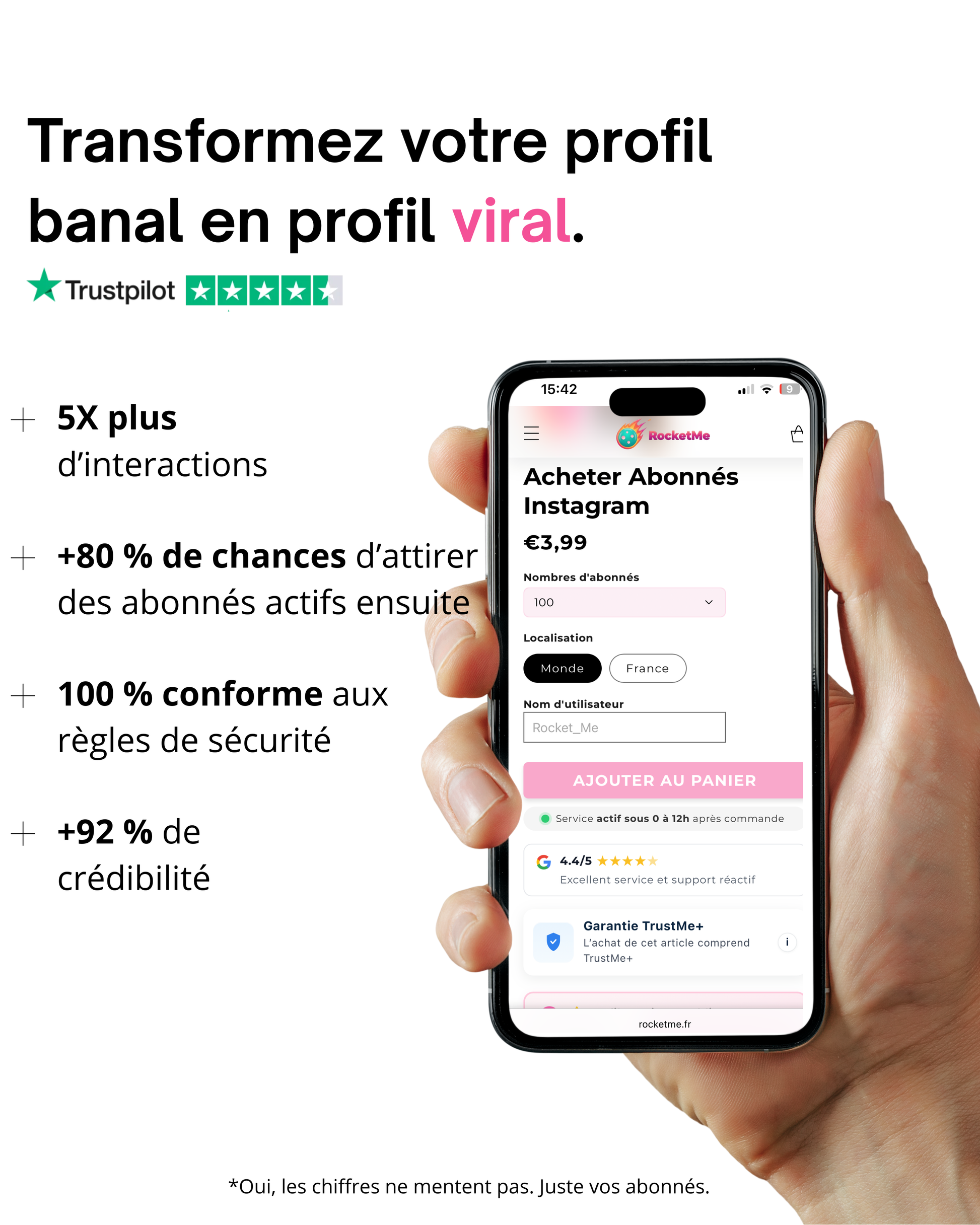 Les abonnés, vues ou interactions achetés servent à renforcer votre visibilité, votre crédibilité et votre notoriété. Ce ne sont pas des comptes actifs : ils n'interagiront pas comme des utilisateurs organiques.